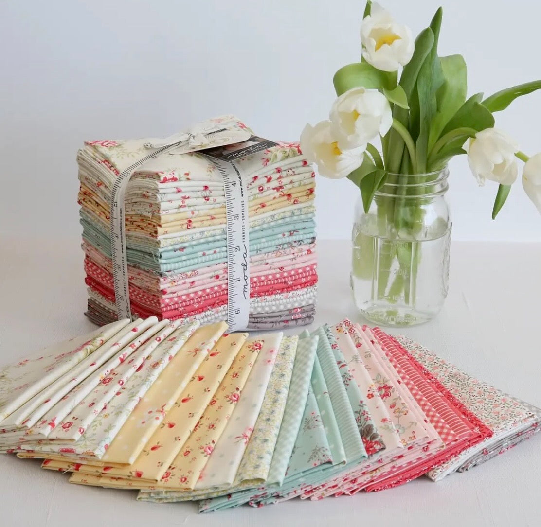The new Morris Meadow collection by Barbara Brackman for Moda returns to William Morris's garden for inspiration. Beautiful prints that feature florals and leafy branches in hues of blues, greens and a hint of coral. One of our favourite collections from Barbara.