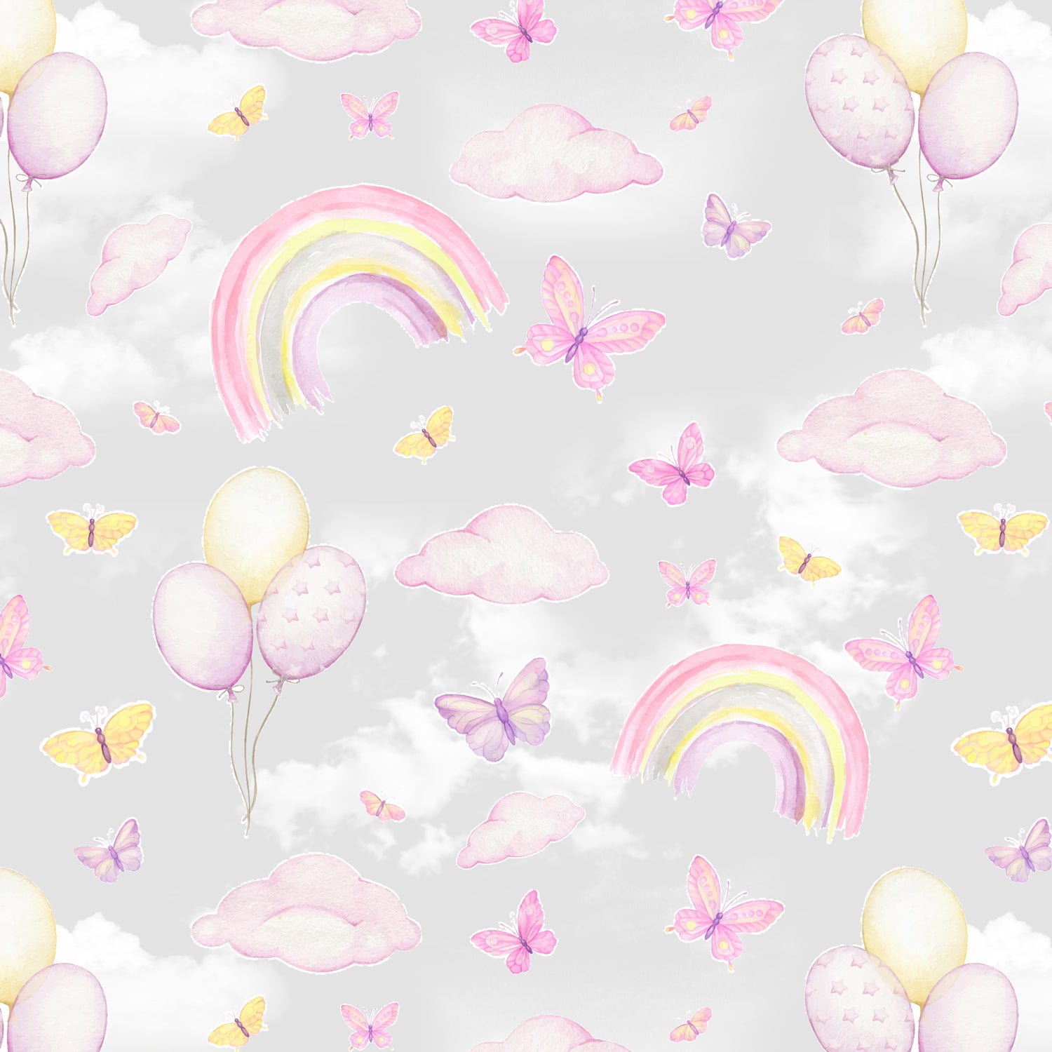 Rainbows & Butterflies - Grey Backing - 108" (sold by 1/2 metre)