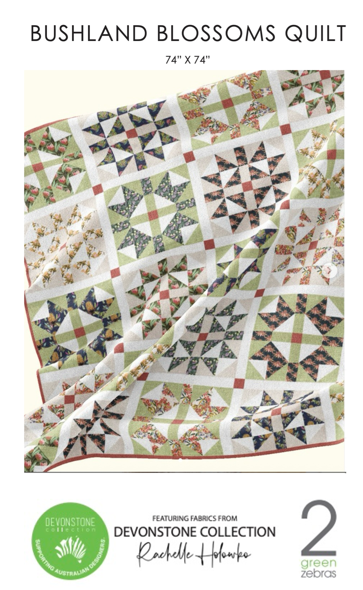 Introducing the Bushland Blossoms Quilt Kit featuring fabrics from the Rachelle Holowko Collection by Devonstone.